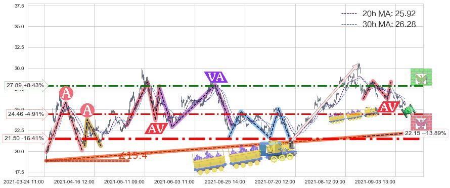 ♘ 支撑价格位24.46,可信任强度63.93%,距离最后交易2021-09-09 14:00形成的收盘价格25.72相差 -4.91%