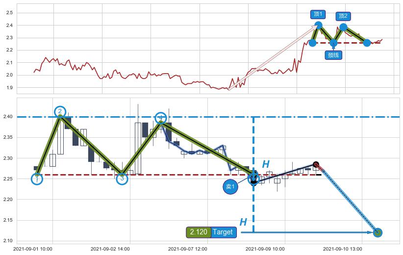 ➣ 【已确认突破】最后价格:2.285与最小【反转】第一目标价格→(09-10:15: 2.120 )相较: 下跌空间【较大】