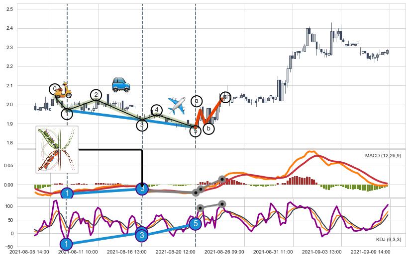 从2021-08-09 09:00至2021-08-11 09:00,共包含13个小时,阶段股价上涨2.83%,阶段股价变动位移路程比: 1 : 3
