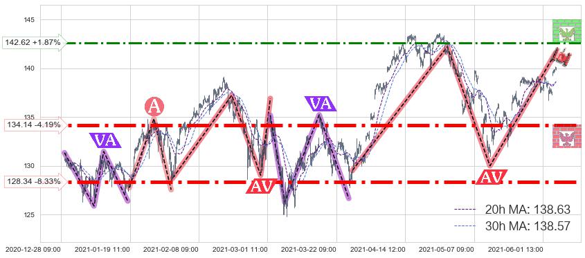 ♘ 阻力价格位142.62,可信任强度56.63%,距离最后交易2021-06-04 14:00形成的收盘价格140.00相差 +1.87%