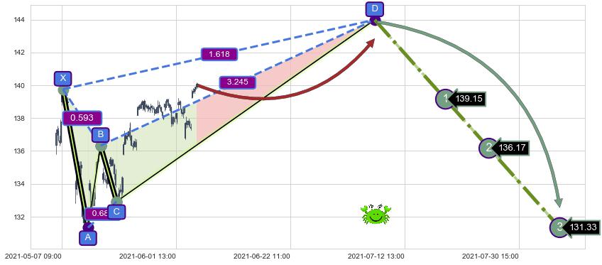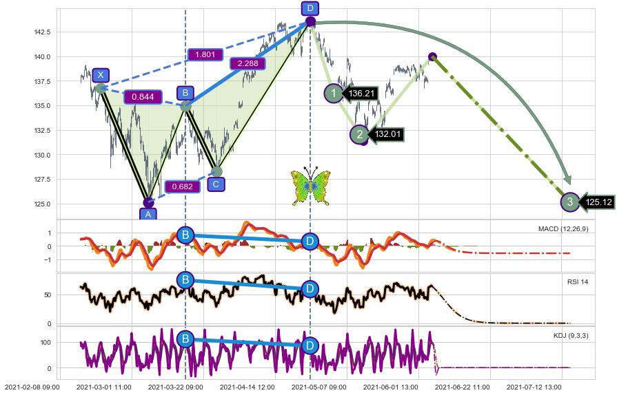 ➣ D点拟合预测价格143.99,距离最后交易收盘价格140.00相差 +2.85%