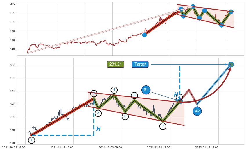 ➣ 最小中继整理涨幅→𝐇: 56.69 (𝐇旗杆的长度:旗杆起点→顶点)