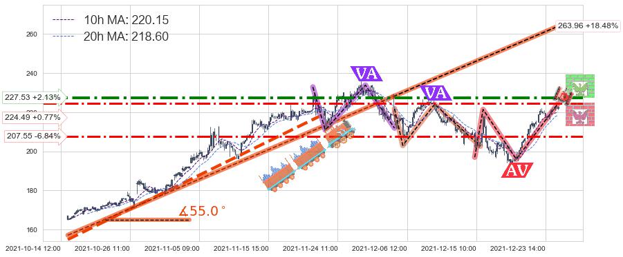 ♘ 阻力价格位227.53,可信任强度71.78%,距离最后交易2021-12-27 15:00形成的收盘价格222.78相差 +2.13%