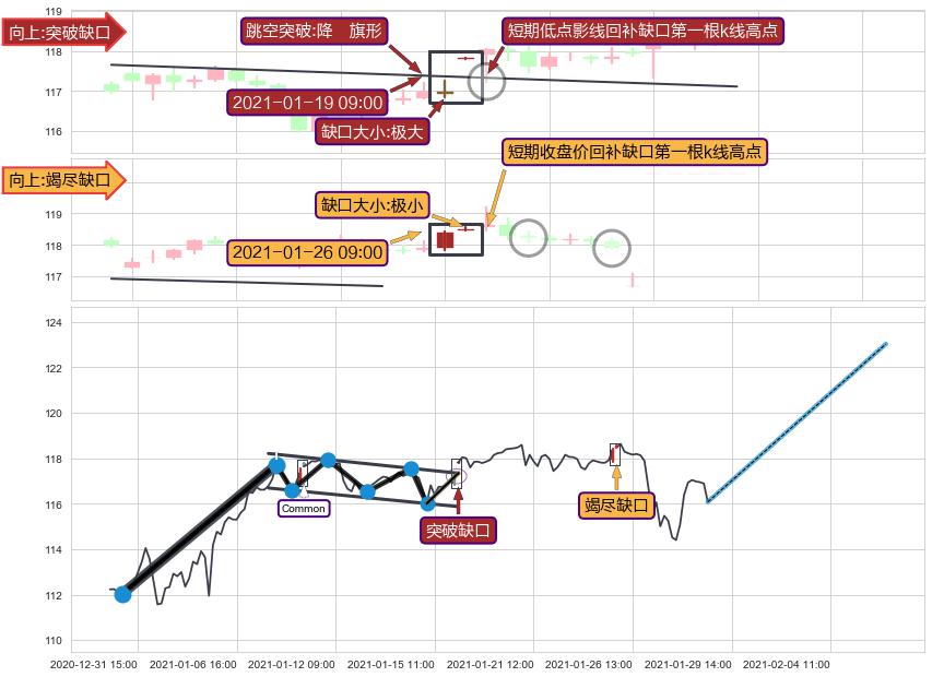 ➢ 2021-01-26 09:00形成:向上跳空【竭尽】缺口