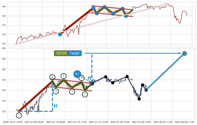 ➣ 最小中继整理涨幅→𝐇: 5.69 (𝐇旗杆的长度:旗杆起点→顶点)