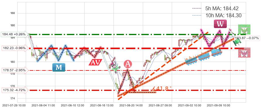 ♞ 5小时均线:184.42,10小时均线:184.30→ 快线>慢线