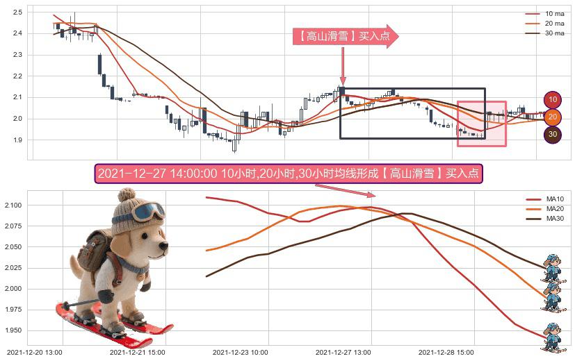 ⚀ 2021-12-22 11:00:00小时-2021-12-29 15:00:00小时显现 10小时-20小时-30小时均线 【高山滑雪】买入点 看多信号,后市看涨,买入