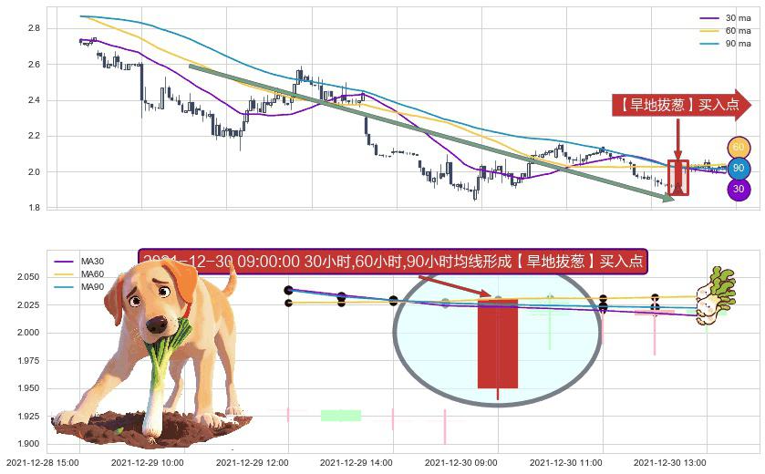 ⚀ 2021-12-30 09:00:00小时显现 30小时-60小时-90小时均线 【旱地拔葱】买入点 看多信号,后市看涨,买入