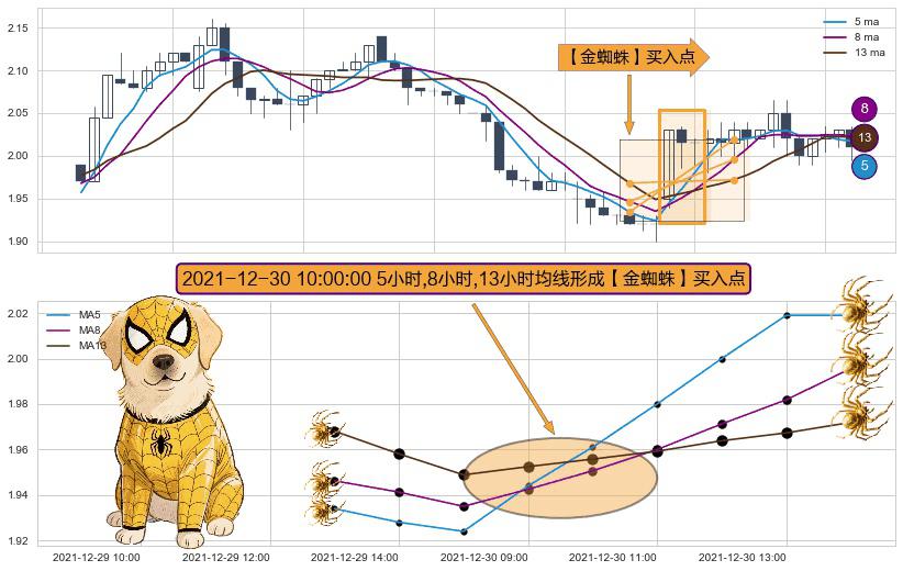 ⚀ 2021-12-30 10:00:00小时显现 5小时-8小时-13小时均线 【金蜘蛛】买入点 看多信号,后市看涨,买入