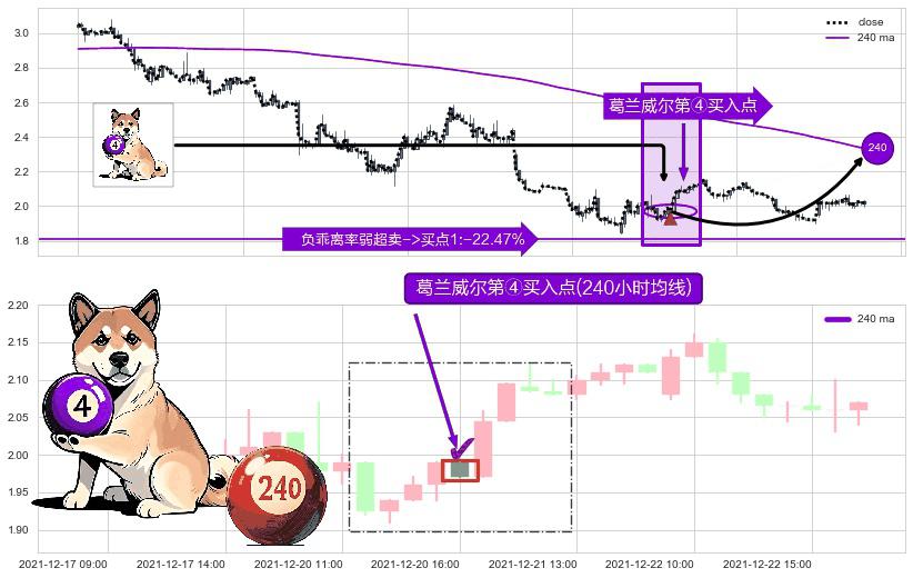 ⚀ 2021-12-20 16:00:00-小时显现 葛兰威尔均线 240小时均线 第④买入点 下降趋势均值回复的短线反弹信号,后市看涨,买进信号
