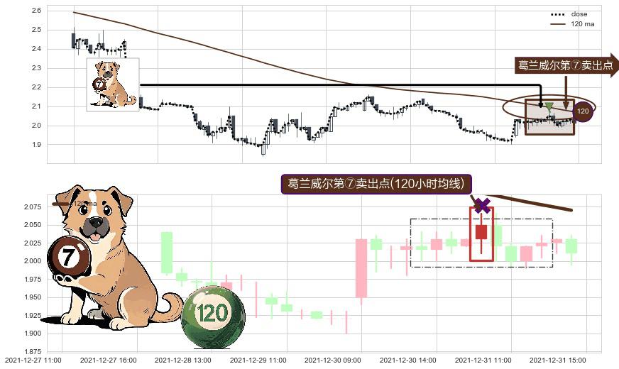 ⚀ 2021-12-31 09:00:00-小时显现 葛兰威尔均线 120小时均线 第⑦卖出点 下降趋势的中继信号,后市看跌,卖出信号