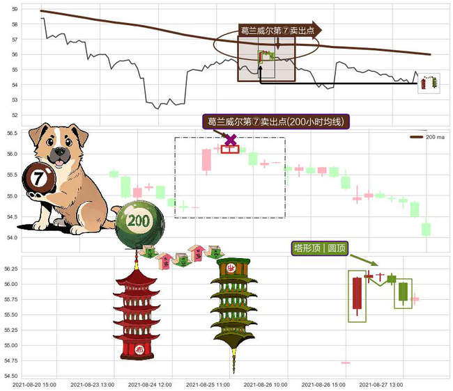 ➣ 2021-08-27 11:00:00-小时显现 葛兰威尔均线 200小时均线 第⑦卖出点 下降趋势的中继信号,后市看跌,卖出信号