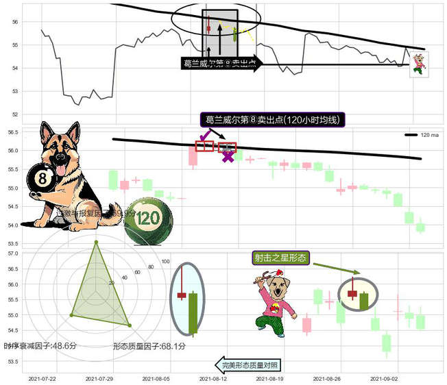 ➣ 射击之星形态 + 葛兰威尔第⑦卖出点葛兰威⑦卖:均线阻力下跌信号叠加后【目标达成率】低,【看空】信号叠加【存续影响大】