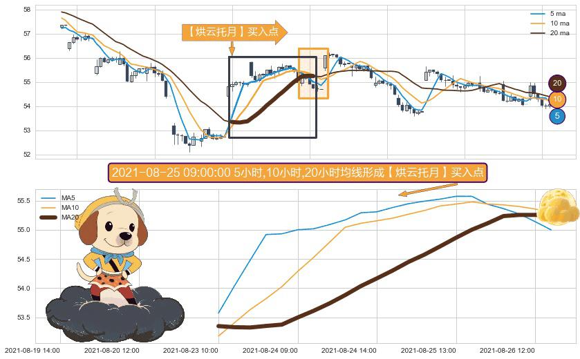 形态多维评估: ⚀ 2021-08-23 10:00:00小时-2021-08-26 13:00:00小时显现 5小时-10小时-20小时均线 【烘云托月】买入点 看多信号,后市看涨,买入