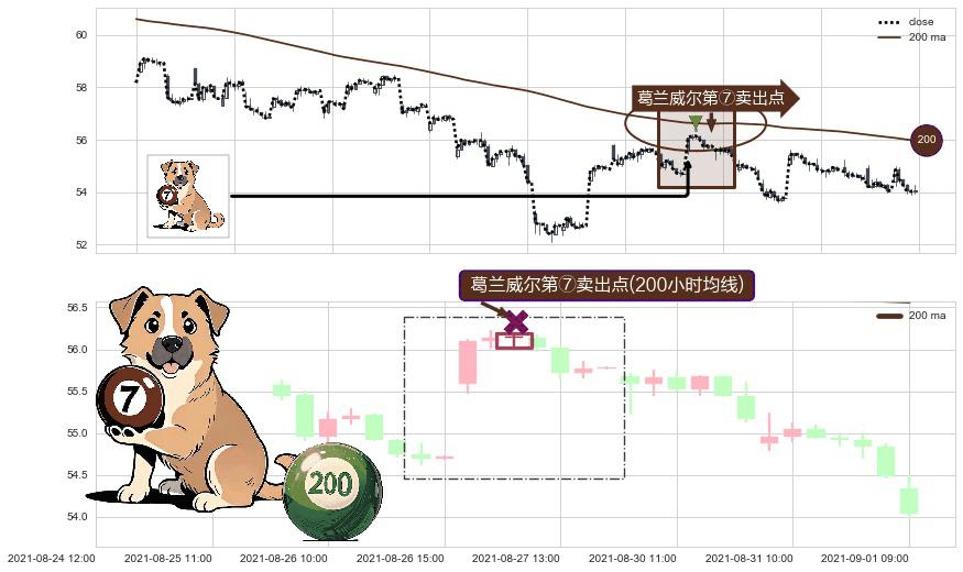形态多维评估: ⚀ 2021-08-27 11:00:00-小时显现 葛兰威尔均线 200小时均线 第⑦卖出点 下降趋势的中继信号,后市看跌,卖出信号