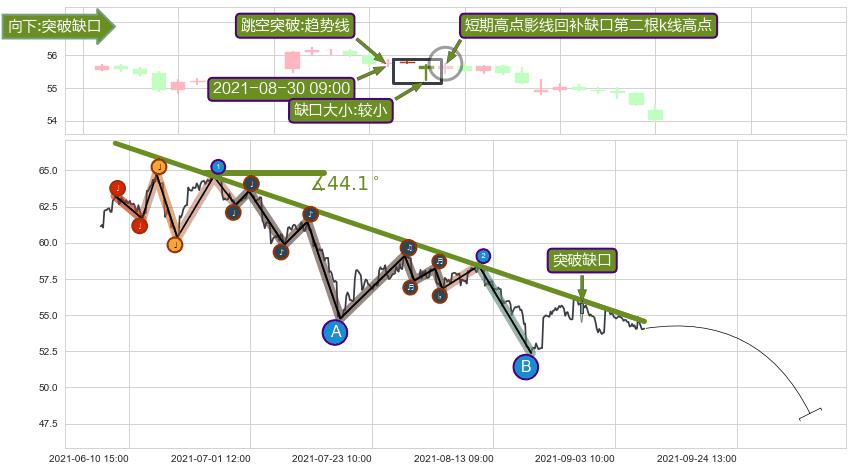 ➢ 2021-08-30 09:00形成:向下跳空【突破】缺口
