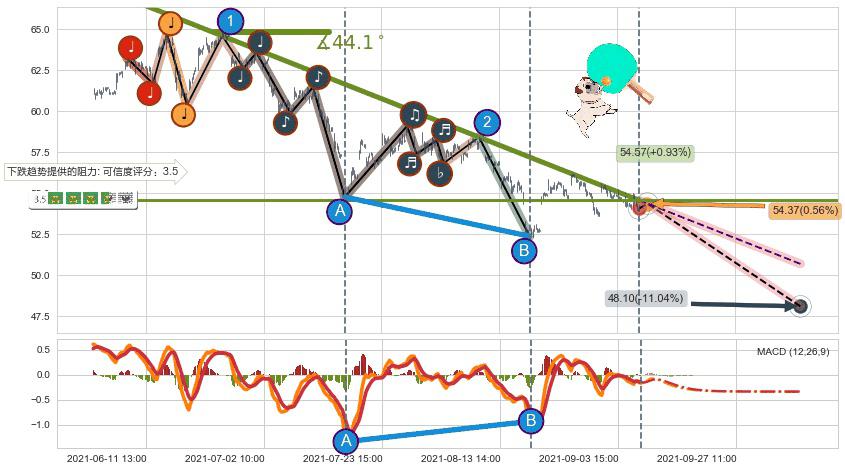 ➣ 预测:2021-10-07 11:00,【继续下探】稳定目前下跌趋势的前提下,预测价格:48.10