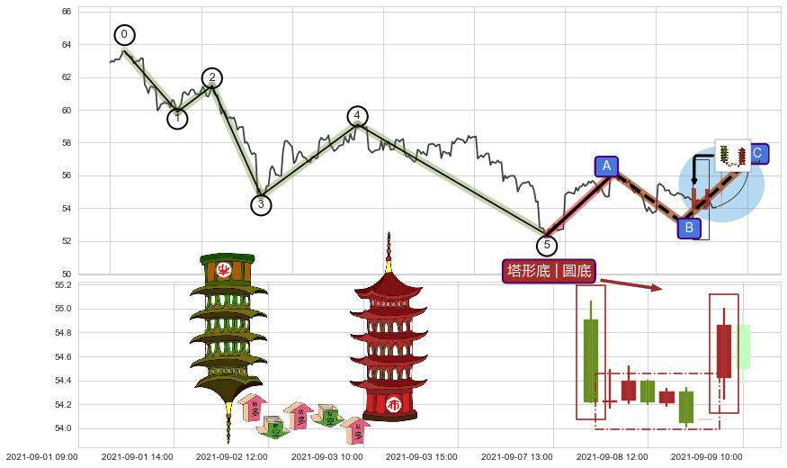 ♘ 阻力价格位55.14,可信任强度67.67%,距离最后交易2021-09-09 14:00形成的收盘价格54.07相差 +1.99%