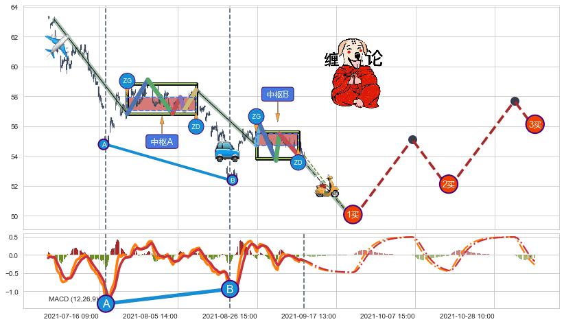➣ 【未完成】缠论 起点:07-02:14, 完成第1中枢A,完成第2中枢B,到达09-09:14
