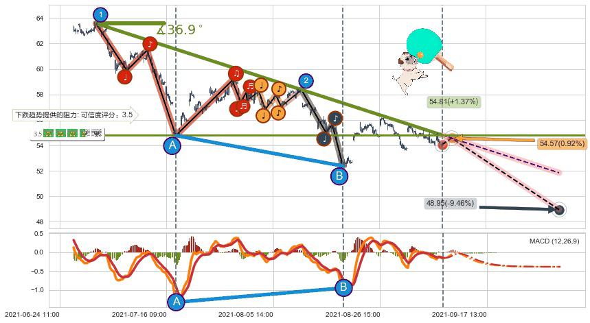 ➣ 预测:2021-10-01 12:00,【继续下探】稳定目前下跌趋势的前提下,预测价格:48.95