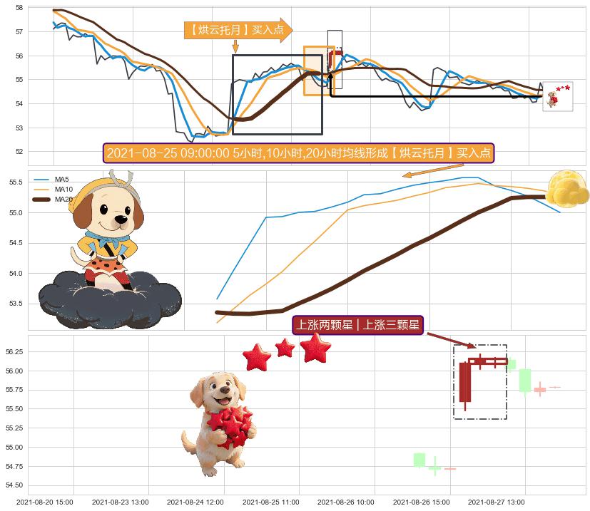 从2021-08-25 12:00至2021-08-27 11:00,共包含13个小时,阶段股价上涨0.90%,阶段股价变动位移路程比: 1 : 5