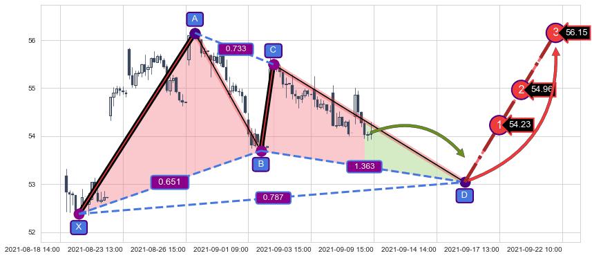 ➣ D点拟合预测价格53.04,距离最后交易收盘价格54.07相差 -1.90%
