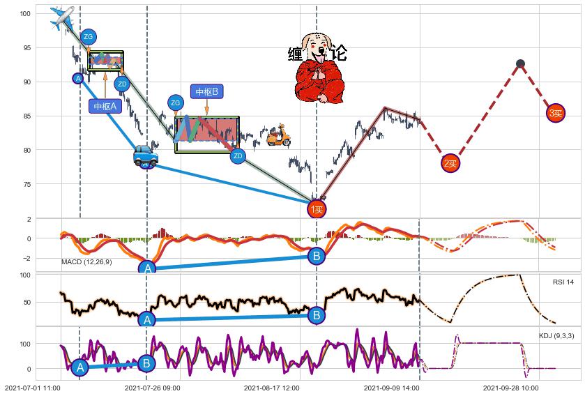 ➣ 【已完成】缠论 起点:07-01:11,完成第1中枢A,完成第2中枢B,终点:08-19:13,缠论共301交易小时