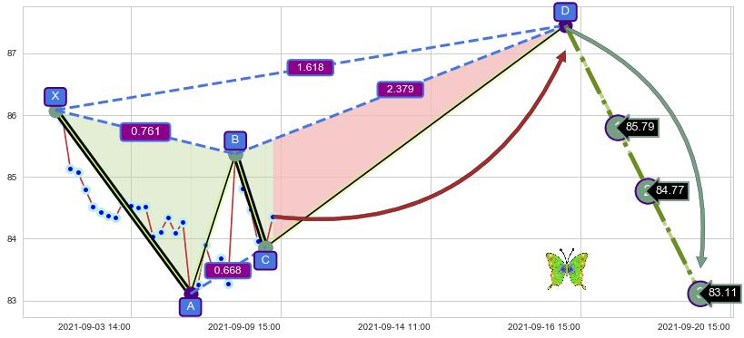 ➣ 未完成【蝴蝶】形态起点X: 09-02:10, 已到达C点: 09-09:13, 预测最终D点: 09-16:13, 共69交易小时