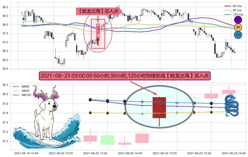 形态多维评估: ⚀ 2021-08-23 09:00:00小时显现 60小时-90小时-120小时均线 【蛟龙出海】买入点 看多信号,后市看涨,买入