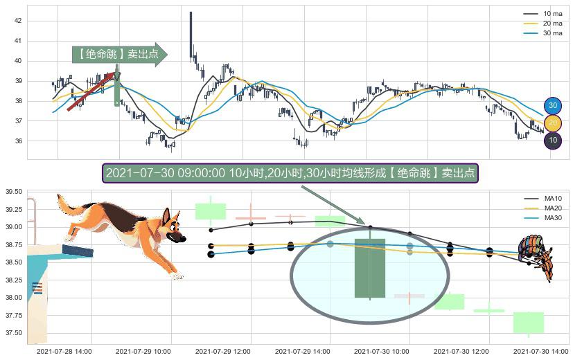 形态多维评估: ⚀ 2021-07-30 09:00:00小时显现 10小时-20小时-30小时均线 【绝命跳】卖出点 看空信号,后市看跌,卖出