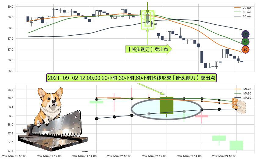 形态多维评估: ⚀ 2021-09-02 12:00:00小时显现 20小时-30小时-60小时均线 【断头铡刀】卖出点 看空信号,后市看跌,卖出