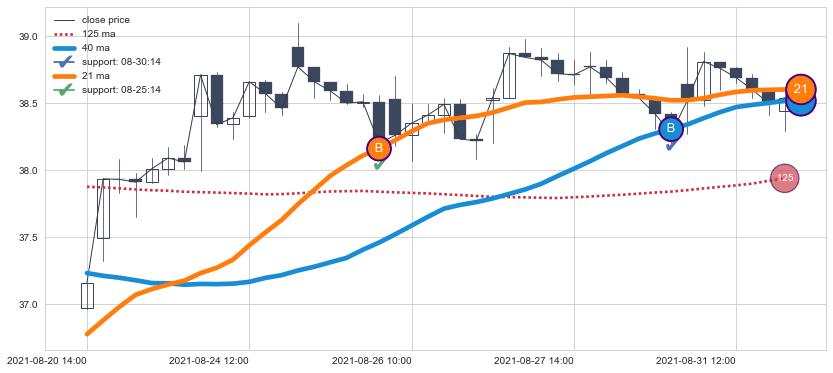 上涨趋势08-20 14:00-09-01 09:00,均线40, 21确认关键支撑2处