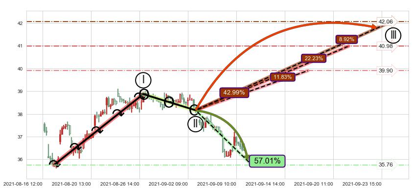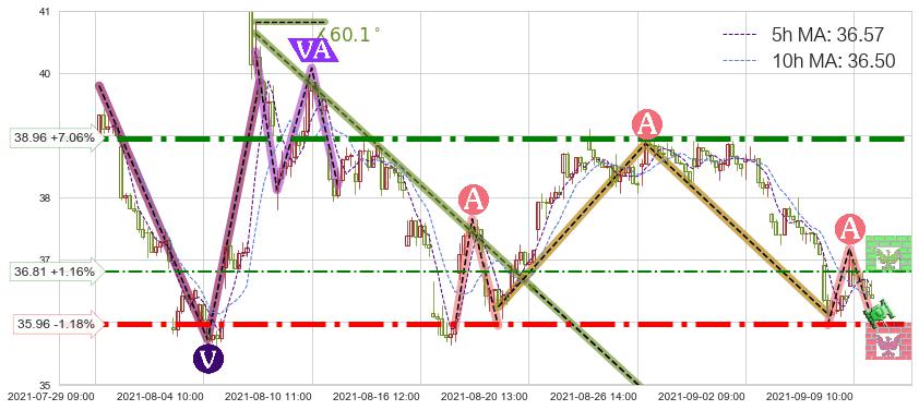 ♘ 阻力价格位36.81,可信任强度41.88%,距离最后交易2021-09-09 14:00形成的收盘价格36.39相差 +1.16%