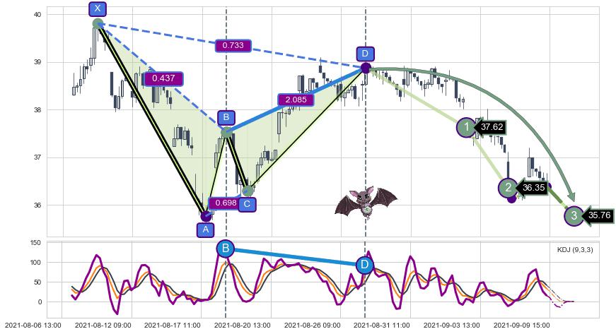 ➣ 已完成【蝙蝠】形态起点X: 08-10:11, 终点D: 08-27:10, 共78交易小时