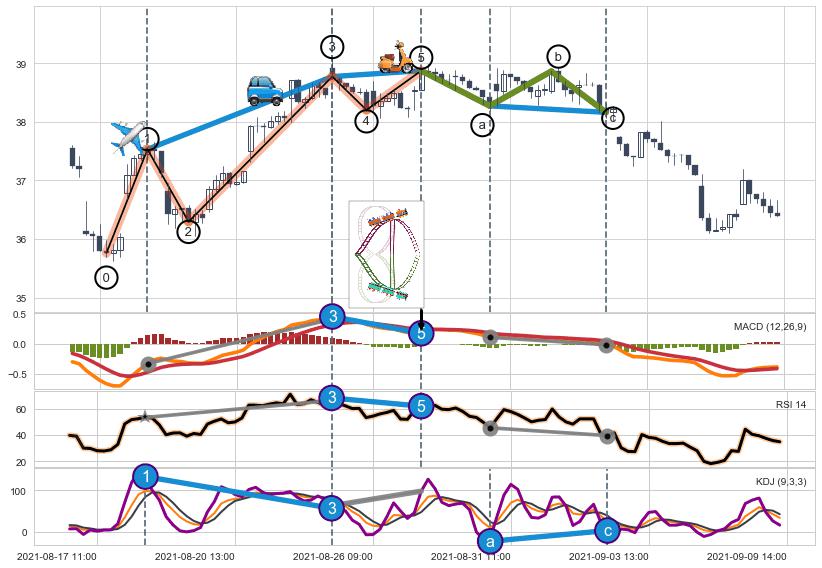 ➣ 1,3,5驱动浪MACD, RSI, KDJ走势都出现【常规背离】反转信号增强