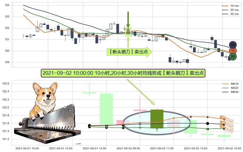 形态多维评估: ⚀ 2021-09-02 10:00:00小时显现 10小时-20小时-30小时均线 【断头铡刀】卖出点 看空信号,后市看跌,卖出