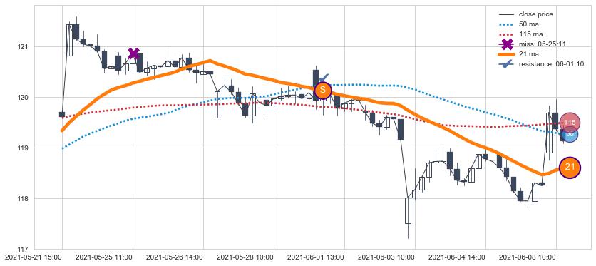 下跌趋势05-21 15:00-06-08 11:00,均线21确认关键阻力1处