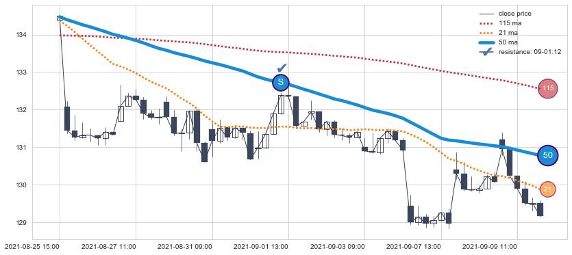 下跌趋势08-25 15:00-09-09 14:00,均线50确认关键阻力1处