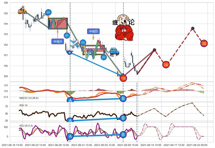 ➢ 预测:2021-09-10 12:00,【小幅反弹】稳定目前下跌趋势的前提下,预测价格:129.64