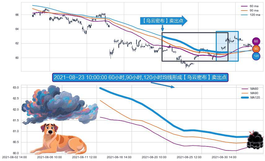 ⚀ 2021-08-11 14:00:00小时-2021-09-01 11:00:00小时显现 60小时-90小时-120小时均线 【乌云密布】卖出点 看空信号,后市看跌,卖出
