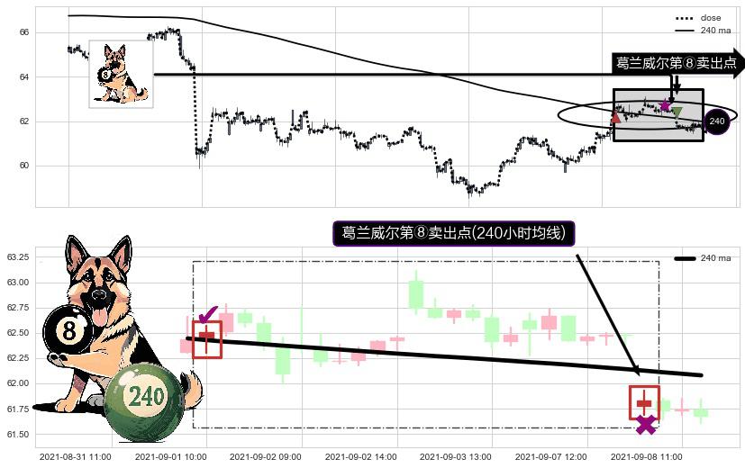 ⚀ 2021-09-08 09:00:00-小时显现 葛兰威尔均线 240小时均线 第⑧卖出点 下降趋势的中继信号,后市看跌,卖出信号