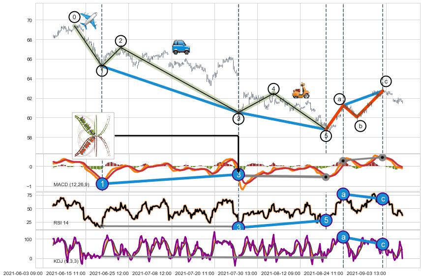 ➣ 第一, 三, 五浪下跌动能逐渐【衰弱变小】,趋势呈现不稳迹象