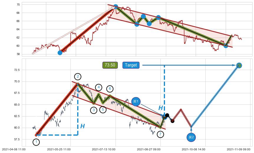 ➣ 最小中继整理涨幅→𝐇: 11.12 (𝐇旗杆的长度:旗杆起点→顶点)