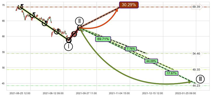 ➣ 大趋势循环浪继续向下概率69.71%