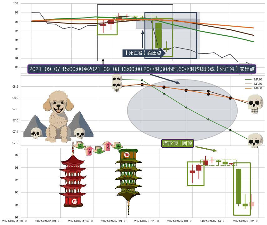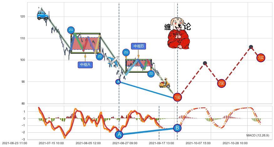 | 11 🅚:【绝命跳】卖出点 ➕ ☯️:缠论中枢点下降缠中枢B破位后距离1买距离较远,随后猜想后续持续下跌(趋势跟踪) ☞ 看空信号 ⇥ 【均线】交织【图形】⇥ 综合量化分数: 21 | > |