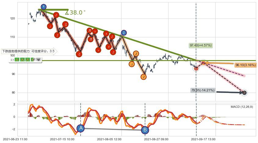 ➣ 预测:2021-09-30 12:00,【继续下探】稳定目前下跌趋势的前提下,预测价格:79.91