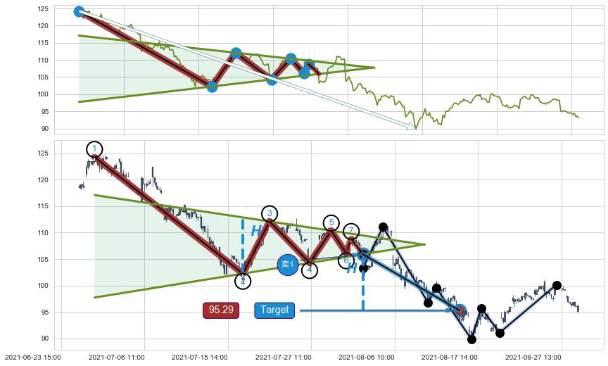 ➣ 【已达成】最小【整理】第一目标价格→(08-16:09: 95.29 ), 后续继续【整理】下跌动力依然存在,下跌空间适中
