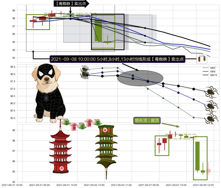 | 3 🅚:【毒蜘蛛】卖出点 ➕ 📐:下降对称三角整理下行突破支撑位破位, 猜想持续下沉下跌,被突破的支撑位已变为阻力位 ☞ 看空信号 ⇥ 【均线】交织【图形】⇥ 综合量化分数: 19 | > |