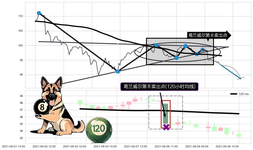 ➢ 【卖1】: 激进型 卖点→(09-08:09: 97.96 )形成突破下降【对称】三角形整理【整理】形态