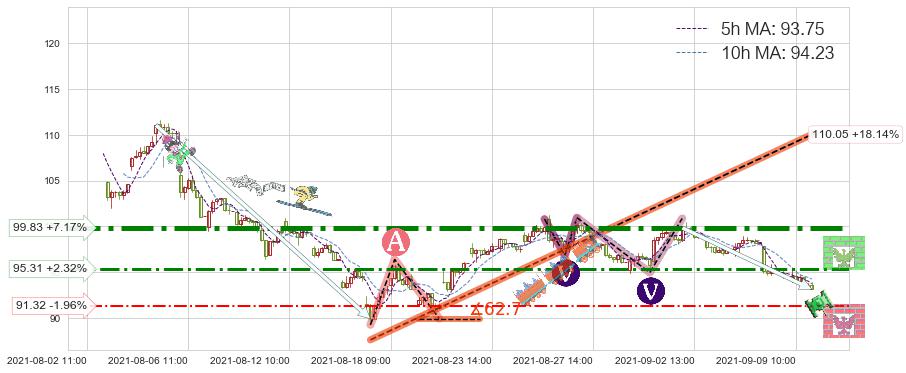 ♘ 阻力价格位99.83,可信任强度90.04%,距离最后交易2021-09-09 14:00形成的收盘价格93.15相差 +7.17%